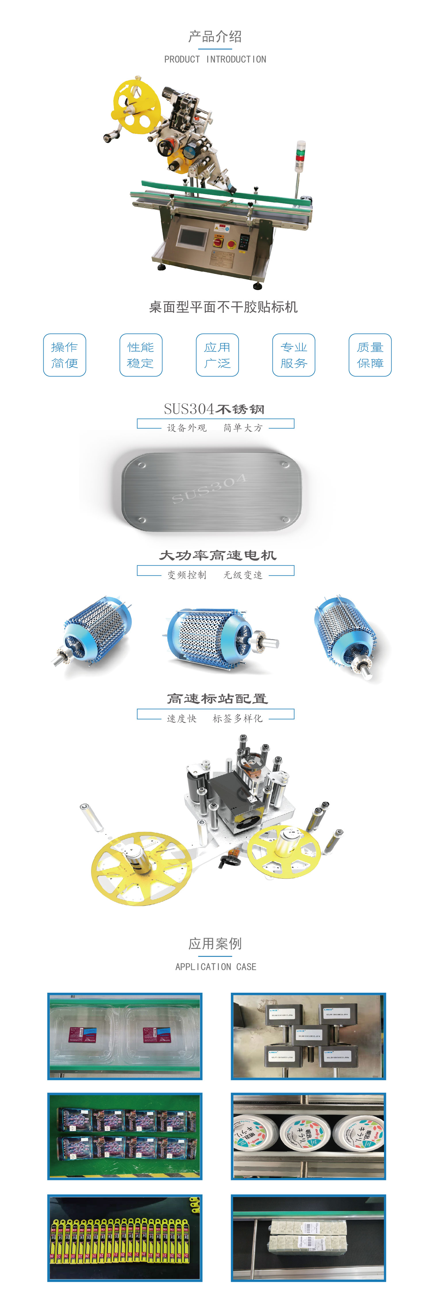 應(yīng)用于各行業(yè)中各類產(chǎn)品的上表面貼標(biāo),如酒水行業(yè)的瓶蓋貼標(biāo)、日用品行業(yè)中餐盒貼標(biāo)及其他行業(yè)中的紙盒的平面貼標(biāo)等等; 也可用于產(chǎn)品醫(yī)藥行業(yè)的一級(jí)包裝、二級(jí)包裝、三級(jí)外包裝上標(biāo)識(shí)信息與相關(guān)的數(shù)據(jù)進(jìn)行關(guān)聯(lián),實(shí)現(xiàn)智能溯源。實(shí)現(xiàn)產(chǎn)品的防偽防竄貨的功能; 本機(jī)型主要的材質(zhì)為符合國際標(biāo)準(zhǔn)的SUS304不銹鋼和進(jìn)口鋁合金材質(zhì),鋁合金的表面經(jīng)過雙層陽極氧化處理,不生銹、不變形。